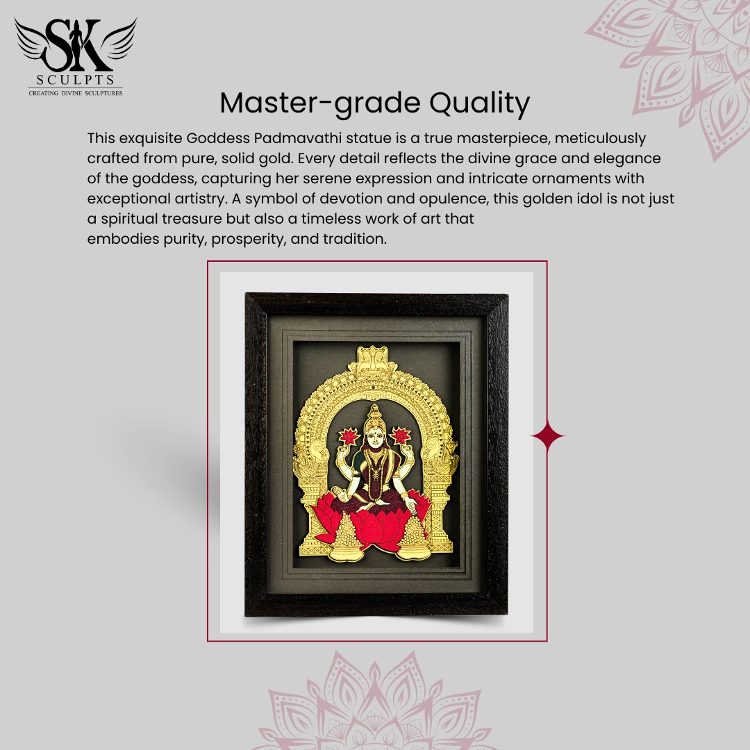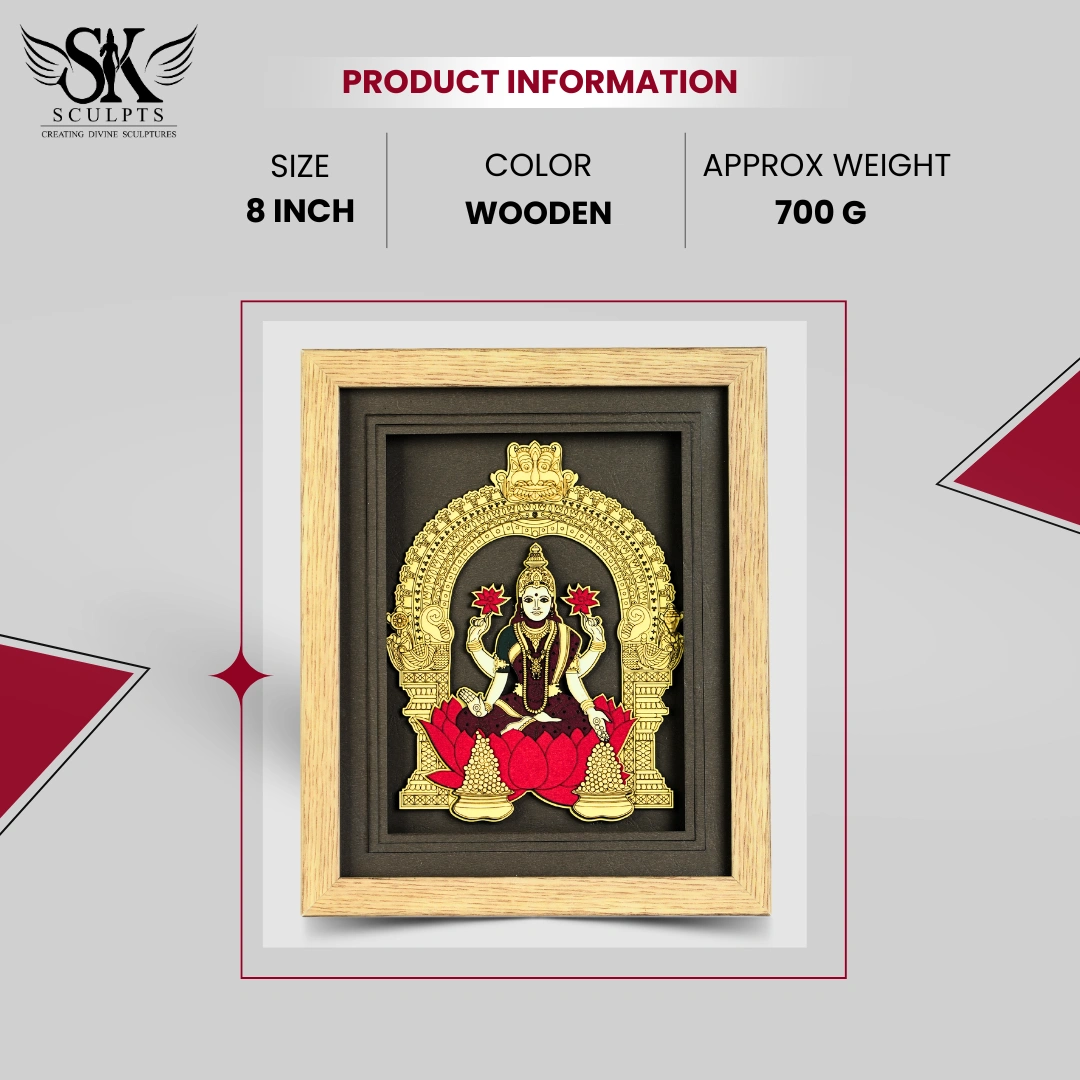Elevate your space with the divine presence of the Lakshmi Wooden Frame, a masterpiece that reflects sacred craftsmanship and devotion. Meticulously handcrafted from pure, solid wood, this exquisite frame captures the serene expression and intricate ornaments of Goddess Lakshmi with exceptional artistry. More than just a spiritual treasure, it is a symbol of purity, prosperity, and tradition, a true testament to India’s rich cultural heritage.