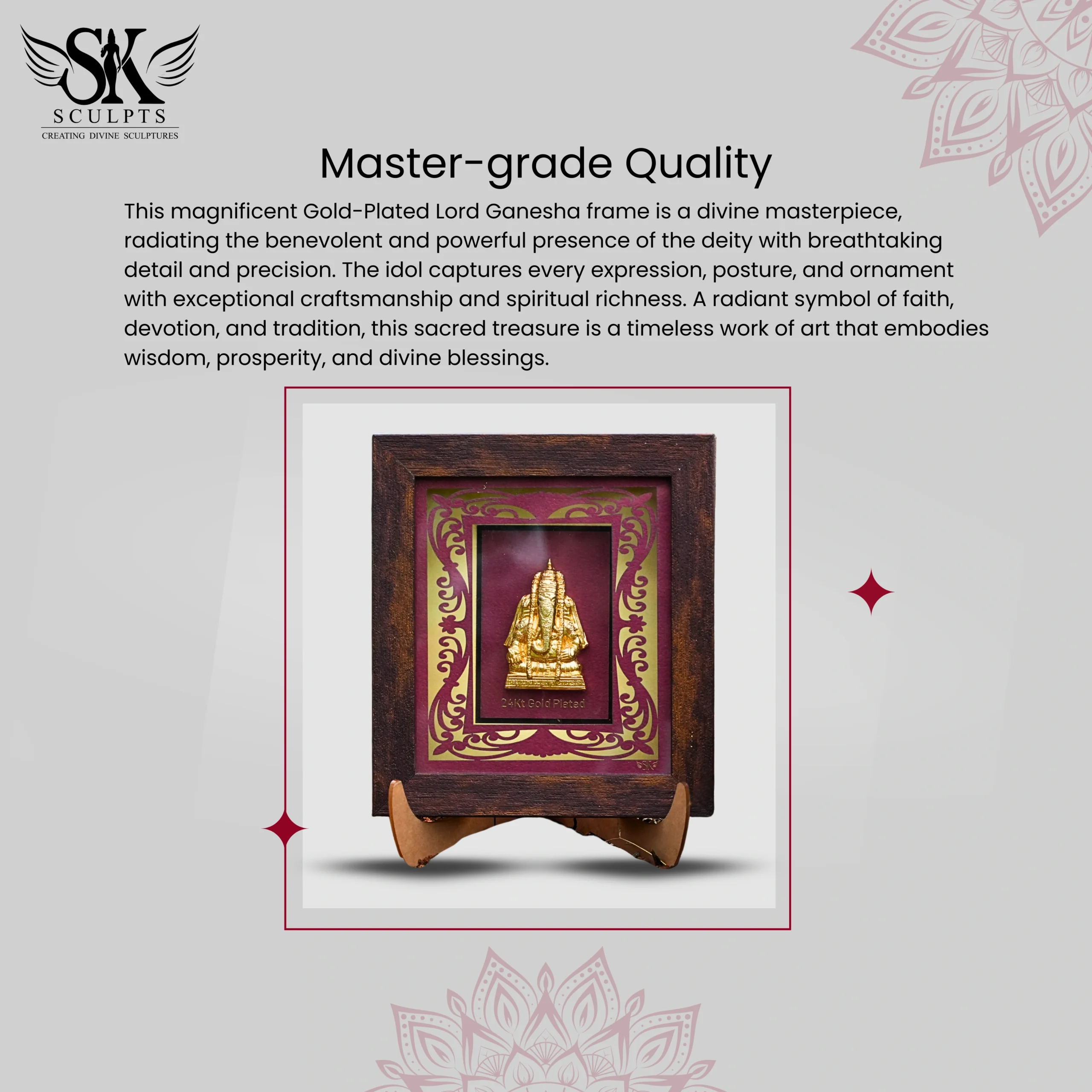 This magnificent Gold-Plated Lord Ganesha frame is a divine masterpiece, radiating the benevolent and powerful presence of the deity with breathtaking detail and precision. The frame captures every expression, posture, and ornament with exceptional craftsmanship and spiritual richness. A radiant symbol of faith, devotion, and tradition, this sacred treasure is a timeless work of art that embodies wisdom, prosperity, and divine blessings.