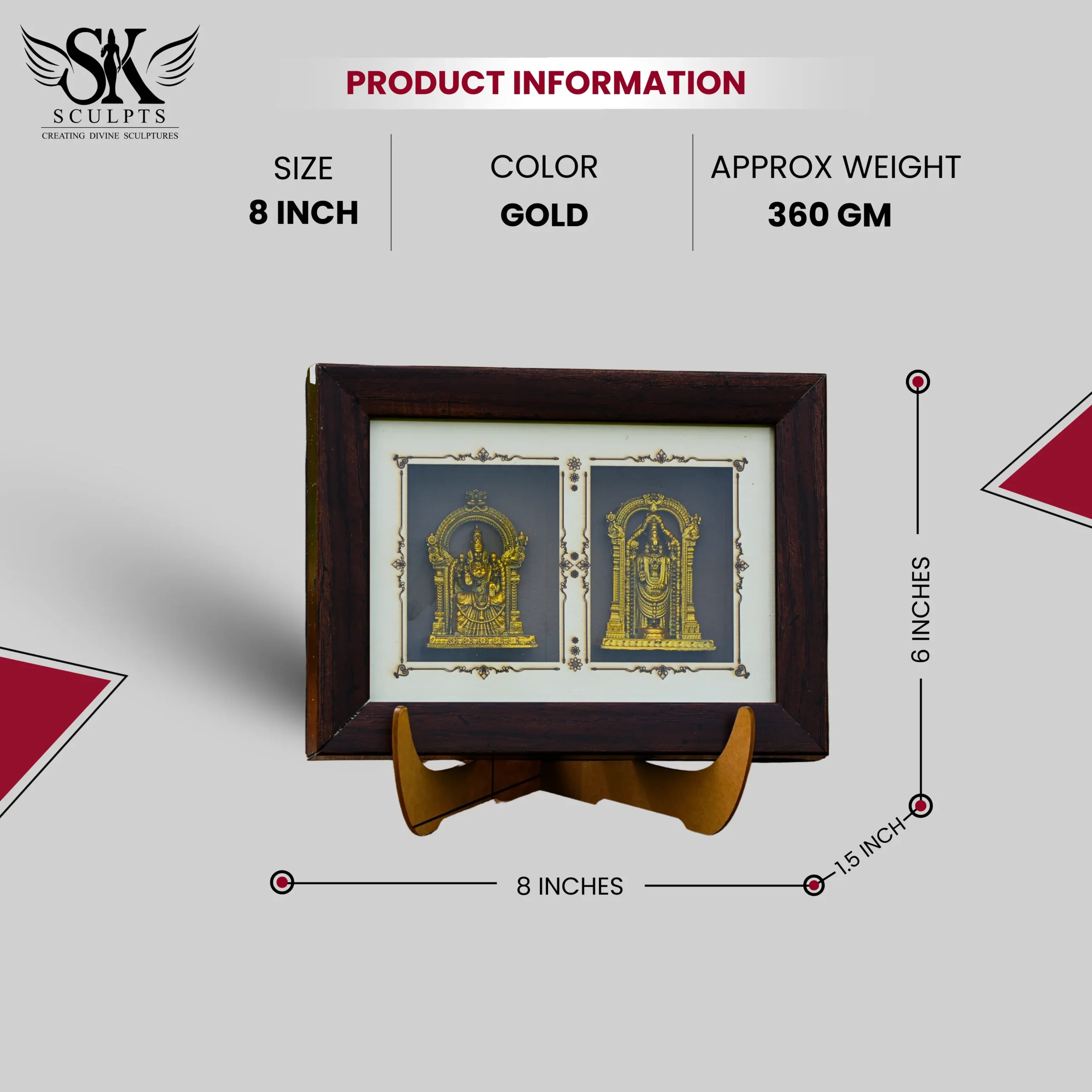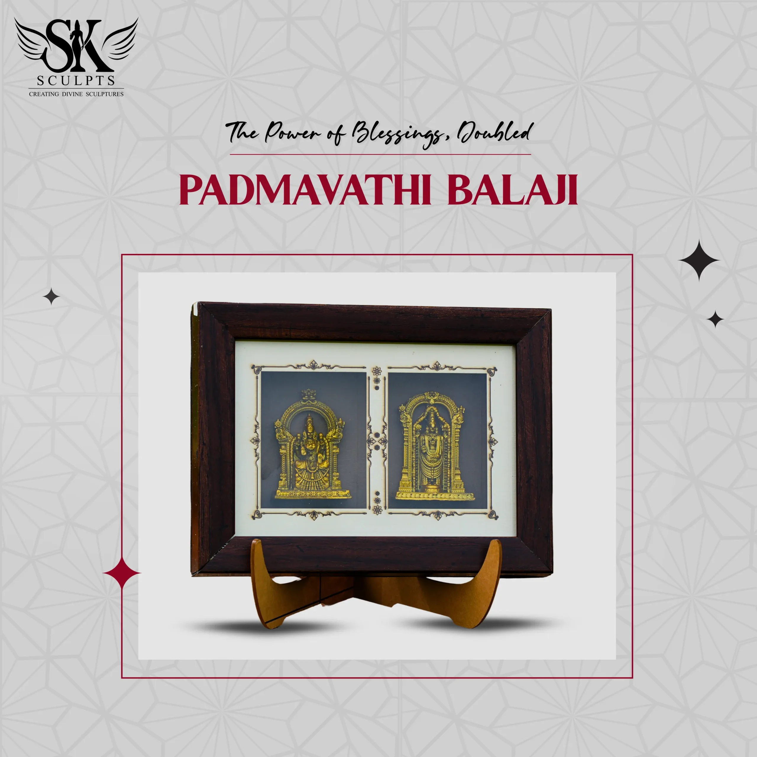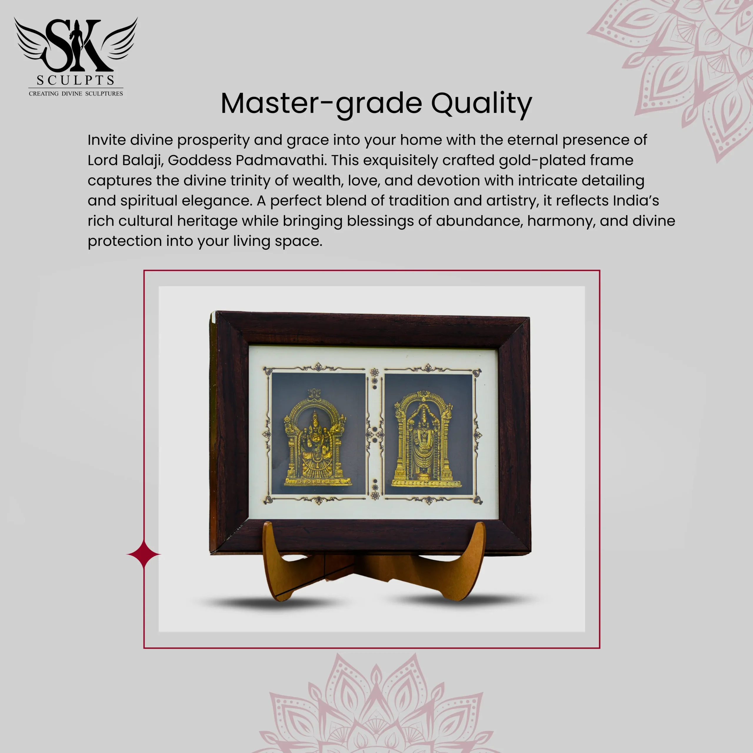 Invite divine prosperity and grace into your home with the eternal presence of Lord Balaji and Goddess Padmavathi. This exquisitely crafted gold-plated frame captures their divine union of wealth, love, and devotion with intricate detailing and spiritual elegance. A perfect blend of tradition and artistry, it reflects India’s rich cultural heritage while bringing blessings of abundance, harmony, and divine protection into your living space.